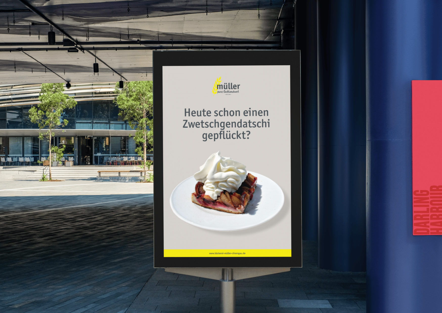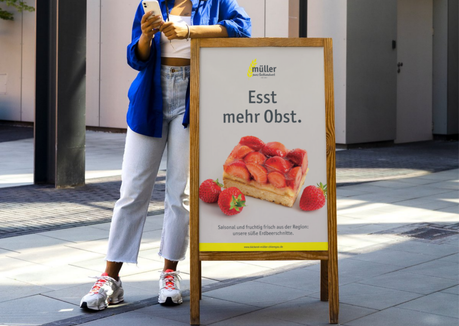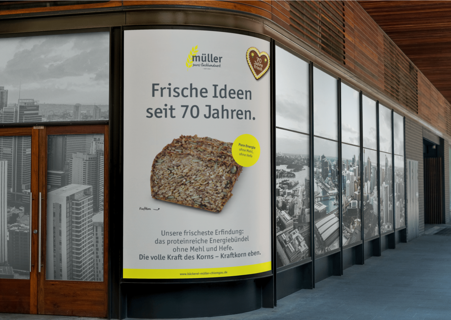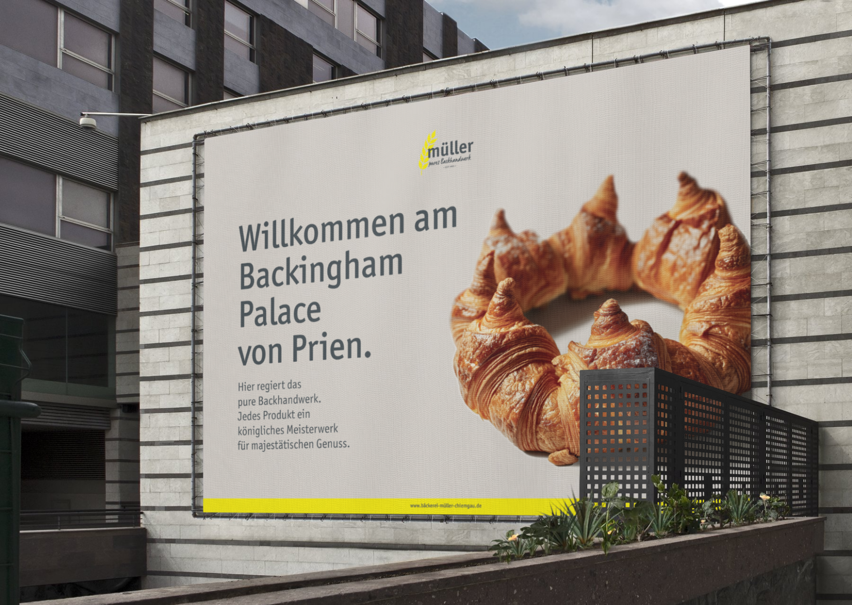 Das neue Gesicht der Bäckerei Müller in Prien: klare Formen, frische Farben und eine Gestaltung, die sofort ins Auge fällt – modern, einladend und trotzdem vertraut.